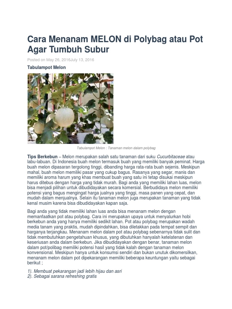 Cara Menanam Melon Di Polybag Atau Pot Agar Tumbuh Suburdocx