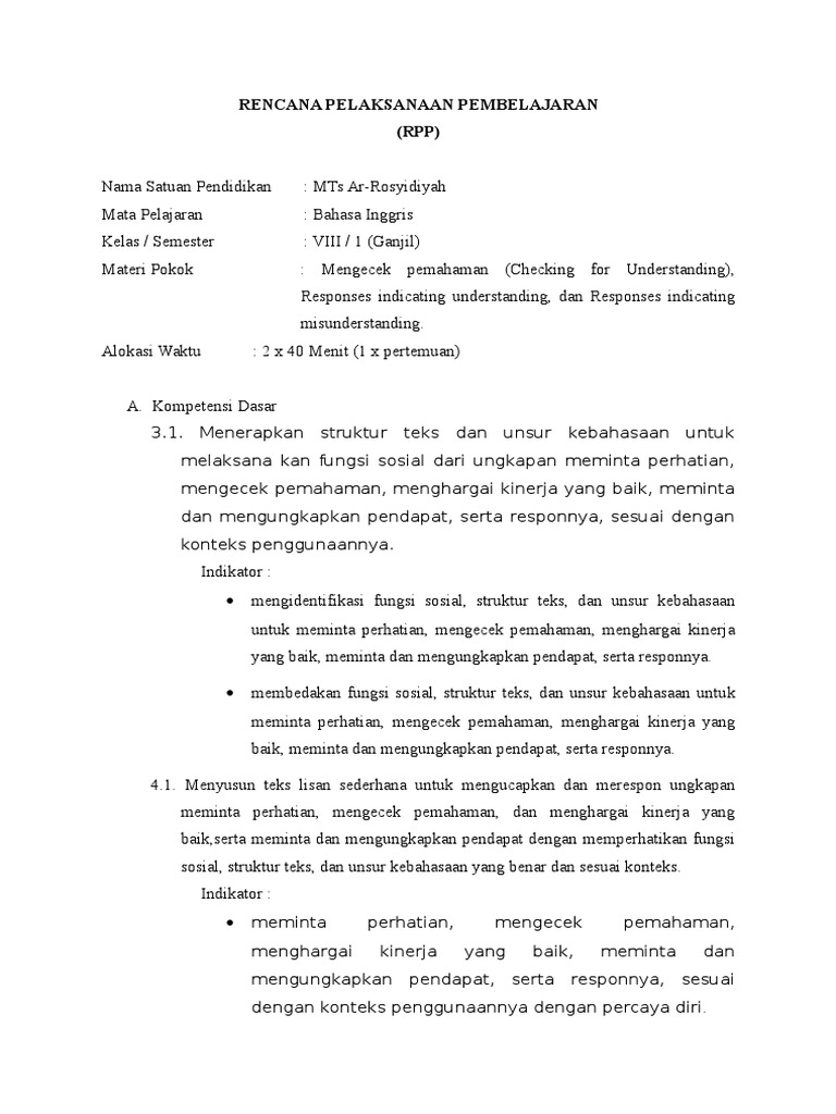Rpp Bahasa Inggris Kurikulum 2013 Kelas 8 Mengecek