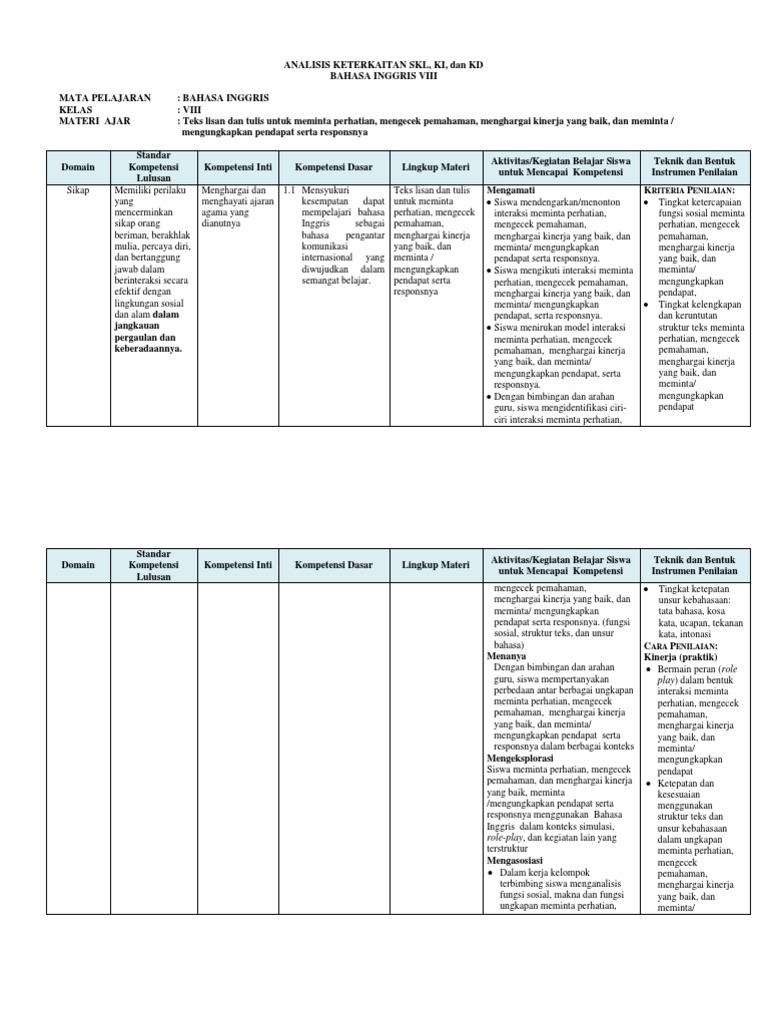 Analisis Keterkaitan Skl Ki Kd Binggris Viii