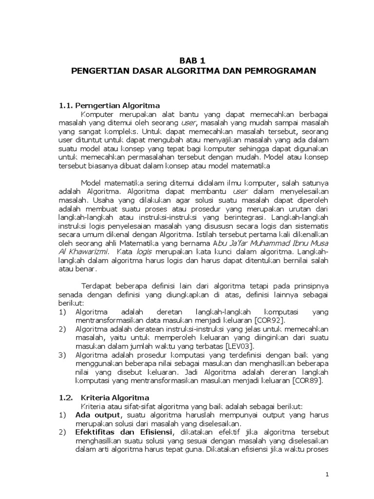 Bab 1 Pengertian Dasar Algoritma Dan Program