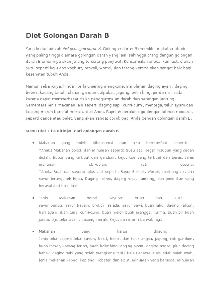 Diet Golongan Darah B Positif Konsultan Kolesterol
