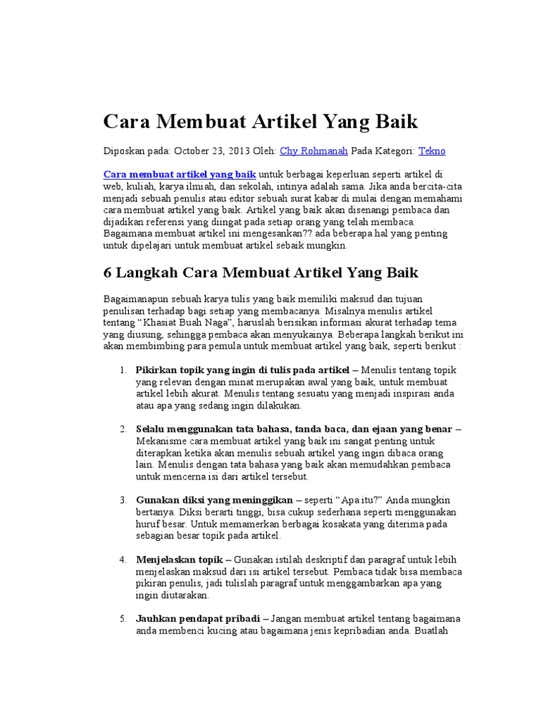 Cara Membuat Artikel Yang Baik