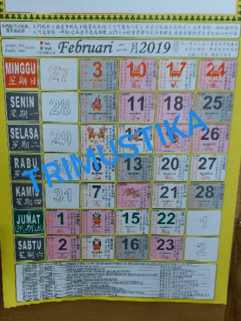 Kalender Bulanan Fengshui Feng Shui 2019 Ukuran 32cm X 47cm