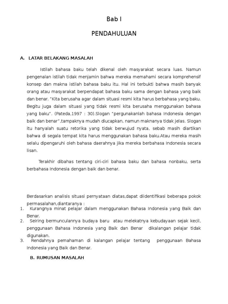 Bab 1 Bahasa Indonesia Baku Pemakaiannya Dengan Baik Dan
