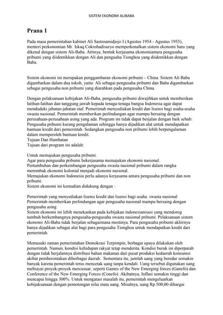 Sistem Ekonomi Ali Baba
